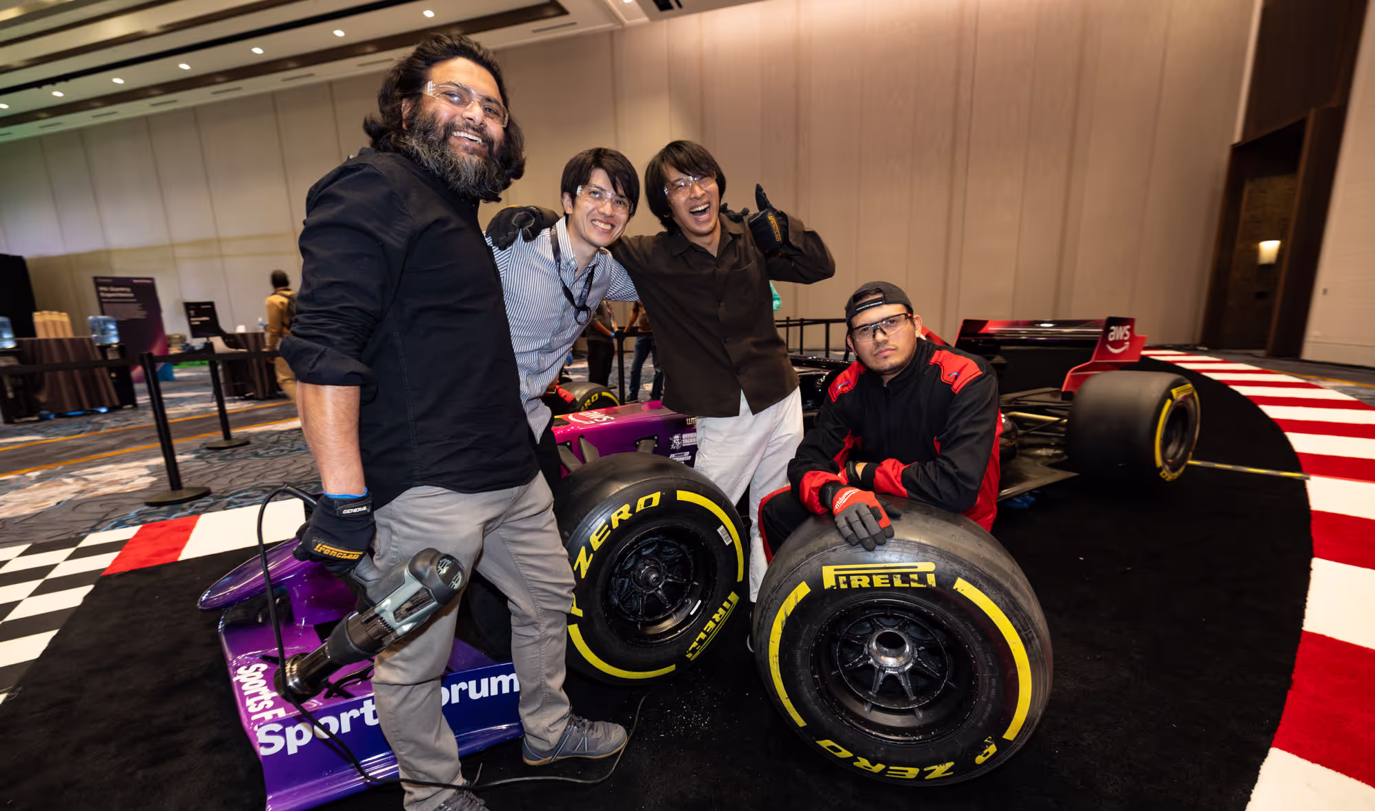 Sports Forum is a multi-purpose event space inside the Caesar’s Forum Ballroom, offering high energy content that celebrates the intersection between sports and technology. Honoring AWS’s partnerships with major sports organizations—NFL, F1, Bundesliga, NHL, and PGA TOUR—Production Club’s scope included AI-driven experiences, skills challenges, a stage for fireside chats and sessions, meeting pods and tail-gate style lounges, trophy displays, and photo moments.