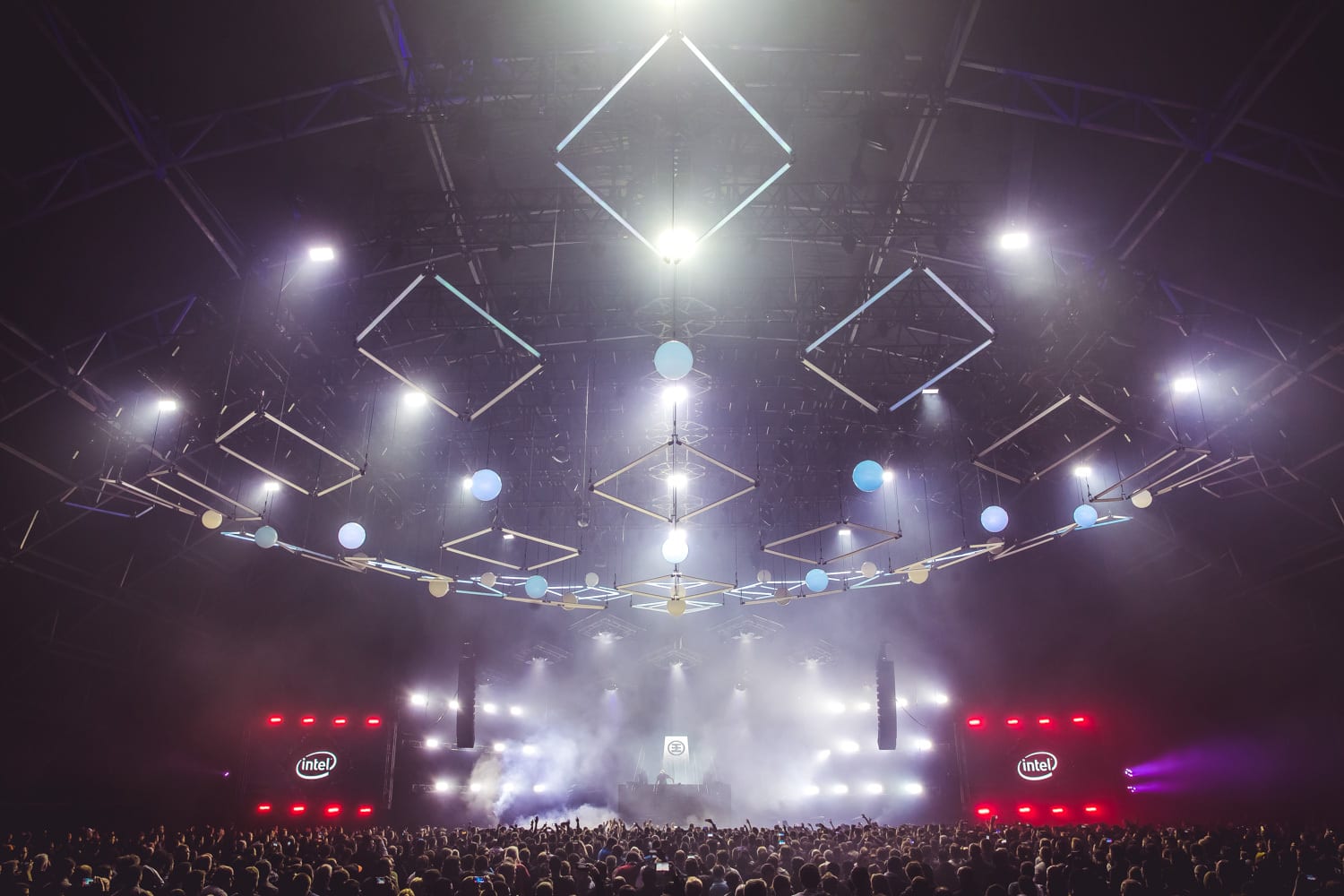 The 2016 edition of the AWS re:Play party hosted over 15,000 re:Invent conference attendees in two “megastructures” on the grounds of the Sands Convention Center in Las Vegas. Megastructure West offered retro arcade and tabletop games, interactive light art (with laser dome), and physical activities like rock climbing and bubble soccer. Meanwhile, Megastructure East housed the live entertainment, featuring performances by Martin Garrix, Team EZY, and AWS resident celebrity Jen Lasher.
